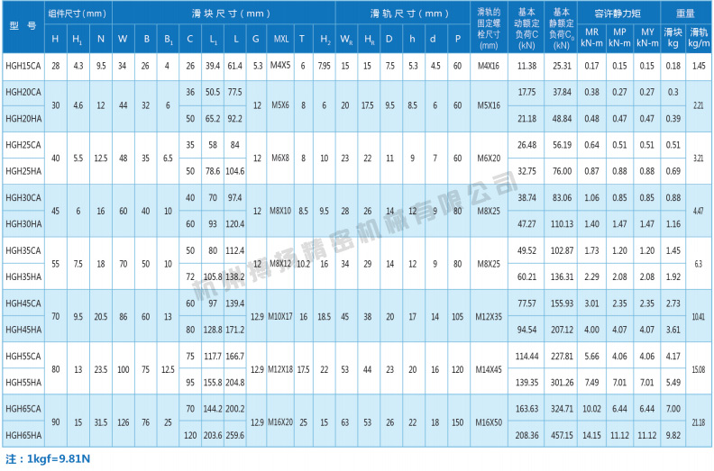 高组装HGH系列綫性滑軌