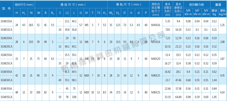 底组装EGW系列綫性滑軌